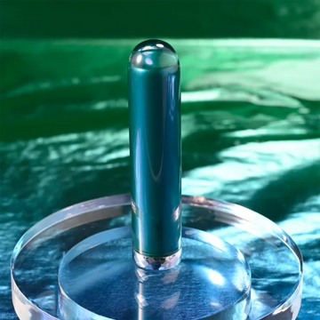 This sleek, compact bullet vibrator from AfterHoursAS measures 3.55 inches long, perfect for precise, targeted stimulation during solo or partnered play. Features a glossy teal-blue glass-style finish with a rounded tip, chrome accents, and subtle power button for discreet, luxurious appeal. Offers 10 vibration modes and rechargable.